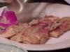 - カエルの肉は美味しいけど小骨がいっぱいあるから注意して食べないといけないね。骨のまわりが美味しいんだけど。腱みたいな感じの肉だね。タレは酢豚みたいなタレなんだけど、唐辛子がちゃんと入っていてよかったよ。(め)