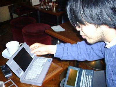 itojunの膝の上にあるのは32MB化HP-200LXですね。