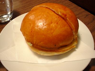 半熟のゆで玉子を潰したものと、酸味が少ないマヨネーズを混ぜたものが入っています。マカロニやキャベツは入っていません。表面はかりかりで中はやわらかいパンと、半熟玉子のコンビネーションは絶妙です。(び)