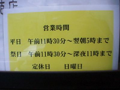 平日:午前11時30分〜翌朝5時まで