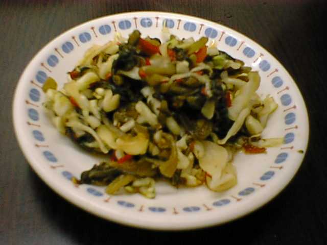 - この炒め物は高菜が効いてて、そして唐辛子の香りと味がさらに食を勧めてくれる。(な)