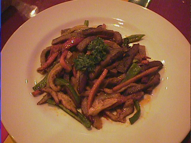 - チリにタマネギ・トマトの和え物を詰めたもの。メニューに激辛指定があるので覚悟して先の方から食べてみると、ちっとも辛くない。ところが最後の根元の部分が突然辛く、確かに激辛。店長さんによればやはりこのチリも苦労して取り寄せているとのこと。(め)
