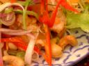- 揚げた海老のサラダですね。ヤムも食べたいし海老、トートマンクンなんかも食べたいなんていう時にいいかも。特に少人数の時とか、ヤム類をあまり数とれない時とか。(び)