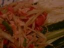 - 普通に辛い、標準的な味のソムタム。個人的にはちょっと甘いタイプが好きだったりするけど、これはこれで文句ないです。(め)