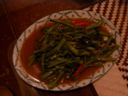 - 唐辛子が大きめでカリッと炒まっているのは評価できます。味付けは少し甘めだけど悪くないです。(め)