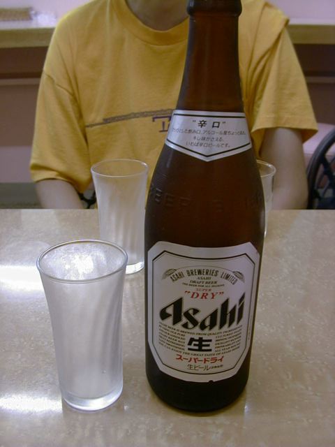 - 生ビール(夏季限定)が今日はないということだったので、瓶ビールにしました。2本頼んだのだけど、ぬるくなるからということで気を使って1本ずつ持ってきてくれました。ただ、僕はビールはグビグビ飲みたいので一口サイズのコップはちょっと残念。(め)