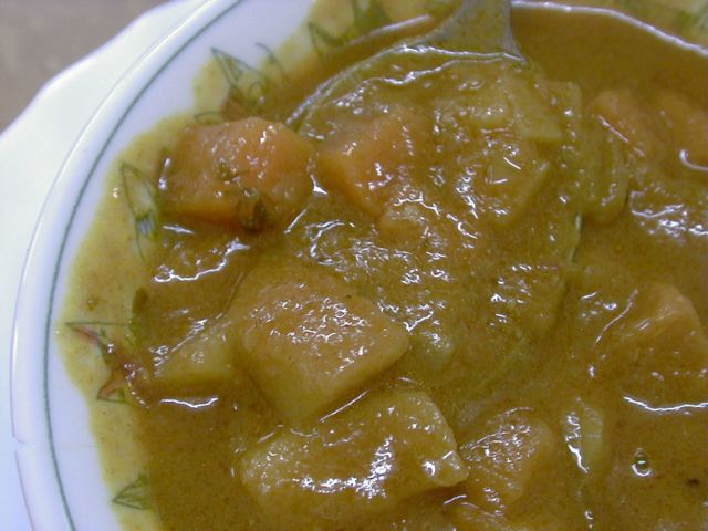 - 本当はエビカレーを注文したかったんだけど、売り切れということで、ベジタブルカレー。売り切れるということは、それだけ新鮮な食材を使うようにしているんじゃないかということで納得。賽の目に切ったニンジン、ジャガイモ、ダイコンがたっぷり入ってます。野菜はほどよく煮えていて、特にダイコンがうまかった。(め)