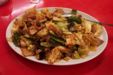 - 今日食べた中で一番好みです。茄子とピーマンと葱をニンニク、ショウガ、甜めん醤とたっぷりの油と絡ませて炒めた甘辛の一品。でもやっぱり白いお米と一緒に食べたい品でした。(az)