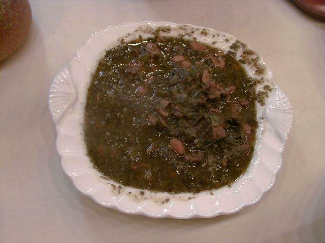 アブグッシュトのスープにナンを入れたところ。ナンを入れてふやかして食べるのだそうです。