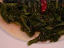 - マトンがピューレ状のほうれん草のカリーに入ってます。好みで言えば、食感の楽しめる形の残ったタイプのサグの方が好きなのですが、マトンのようにちょっと自分の不得手なお肉と一緒の場合には、よーく絡みつくピューレの方が食べやすくなっていいです。(az)