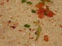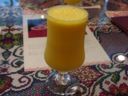 上にかかっているのは少し粗く挽いたクミン。カプチーノのようにふんわり泡だったラッシーの上にシナモンのごとくふりかけられてました。でも混ぜるともっと茶色い粒々が混ざったので、かなりな量が入ってるようです。塩加減は個人的にもう少し抑えてある方が好きです。他のメニューが肉料理メインでちょっと塩分とりがちになるから飲み物は甘いラッシーにしとけば良かったかなぁと思いました。(az)