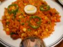 - メニュー写真に惹かれ注文したのだけど、野菜はミックスベジタブルだし、塩胡椒にブイヨンっぽい味つけのごく普通のケチャップライスのようでした。