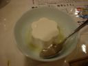 - ココナツプリンというかんじでしょうか。地の色が違うのはお皿の色。(い)