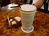 冰豆漿(18元)と蛋餅(23元)。豆漿は、ただ寸胴鍋から注ぐだけと、シンプルです。(JK)