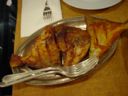 - 静から動へと転じるとはこのことか。カニのマサラ。手を使わずに食べることは不可能だろう。さすがにこれを食している時、皆の会話が止まる。皆しゃぶりついている。それにしてもやはりというかグレービー・ソースが秀逸。カニのエキスが十二分にグレービーにとけ込んでいる。と思いきやそのグレービーにとけ込んだエキスが、今度は身のほうにグッと入ってこれまた、足の部分等、エキスが溢れ帰っている。結構濃厚なイメージがあるだろうが、食べ口はあんがいさっぱりしている。グレービー・ソースは別皿にとりわけて、後でライスと混ぜ込んで食べるなんていうのも最高。(ピ)