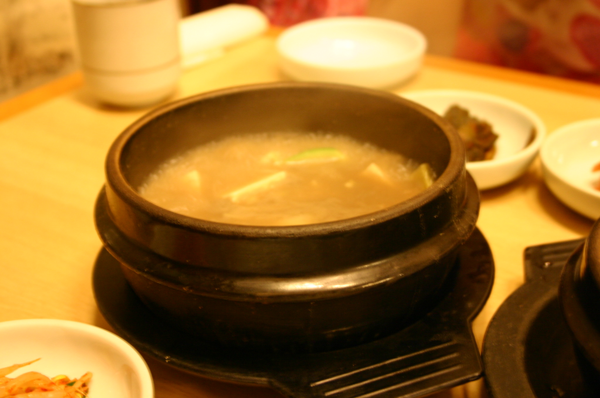 新逸食堂は全羅道テイストの発酵した塩辛く苦くすっぱく複雑な味が特徴的です。韓国料理の真髄の一つといえましょう。でもかなり食べなれた人でないと受け付けないみたい。韓国人でもダメな人はダメですね。(s)