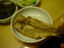 マヌルチキン(よく揚げたチキンにニンニクソース)と